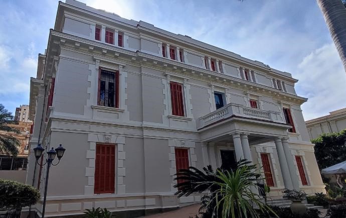 Au premier étage le Cercle Grec et son balcon avec vue panoramique. Une grandeur entièrement différente à Alexandrie, ou deux pôles s’imposent.