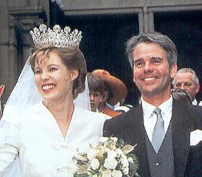 Voici l’imposant diadème de diamants de la famille princière de Wied. Il est ici porté par la princesse Christina de Wied, fille du prince Friedrich Wilhelm de Wied, Chef de la famille princière (1931-2000) et de la princesse Sophie Charlotte de Stolberg-Stolberg, le jour de son mariage à Neuwied le 8 juin 1996 avec le comte Wolf-Eckart von Gemmingen-Hornberg. (Copyright photo : The Royal Forums)