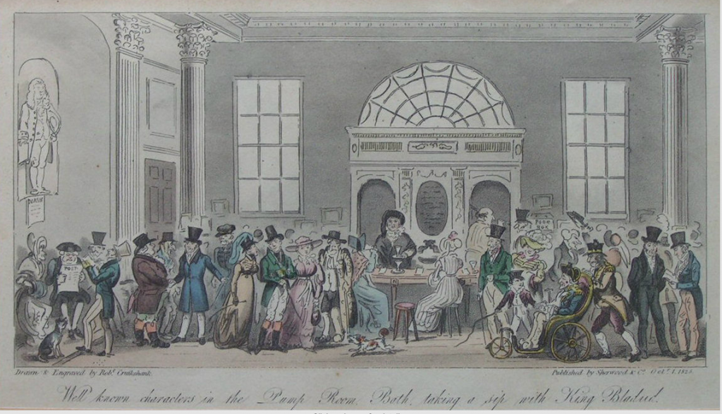 Pump Room le matin, avec un verre d’eau obligatoire, Assembly Room le soir pour se divertir, entre concerts et bals, le lieux des rencontres sociales, extraordinairement décrit dans Northanger Abbey. Et dans l’après-midi, promenade le long des rues magnifiques et achats dans les belles boutiques où se pressent les élégants.