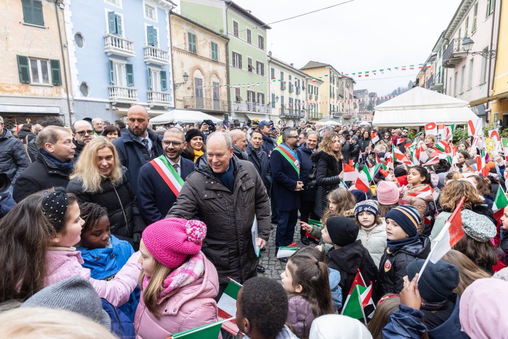 Déplacement du prince Albert de Monaco à Ceva dans le Piémont. Le prince a été accueilli par les autorités et a pris un bain de foule.