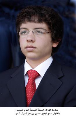 Par décret royal et en vertu de l’article 28 de la Constitution, le roi Abdallah de Jordanie a nommé son fils aîné le prince Hussein prince héritier de Jordanie. Le prince Hussein est âgé de 15 ans. (Copyright photo : Petra News Agency)