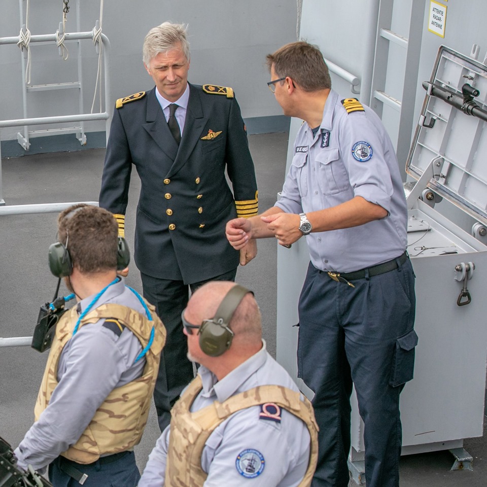 Le roi des Belges était en visite à bord de la frégate Leopold I dans le détroit de Gibraltar. La frégate de la Marine belge fait momentanément partie du Standing NATO Maritime Group 1. Le SNMG1 est une coopération militaire maritime multinationale dans le cadre de la force navale multinationale de l’OTAN qui se compose de 6 à 10 destroyers et frégates. (Merci à Anne – Copyright photo : Palais royal)