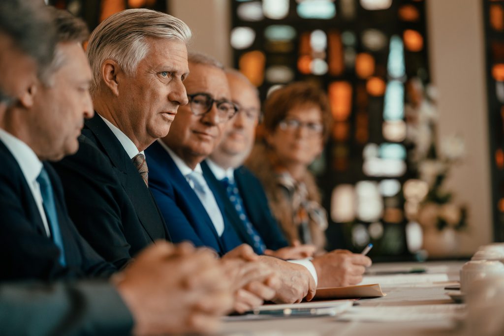 A La Louvière, le roi Philippe a assisté à une table ronde sur le redéploiement socioéconomique de la région du Centre. (Copyright photos : Palais royal)