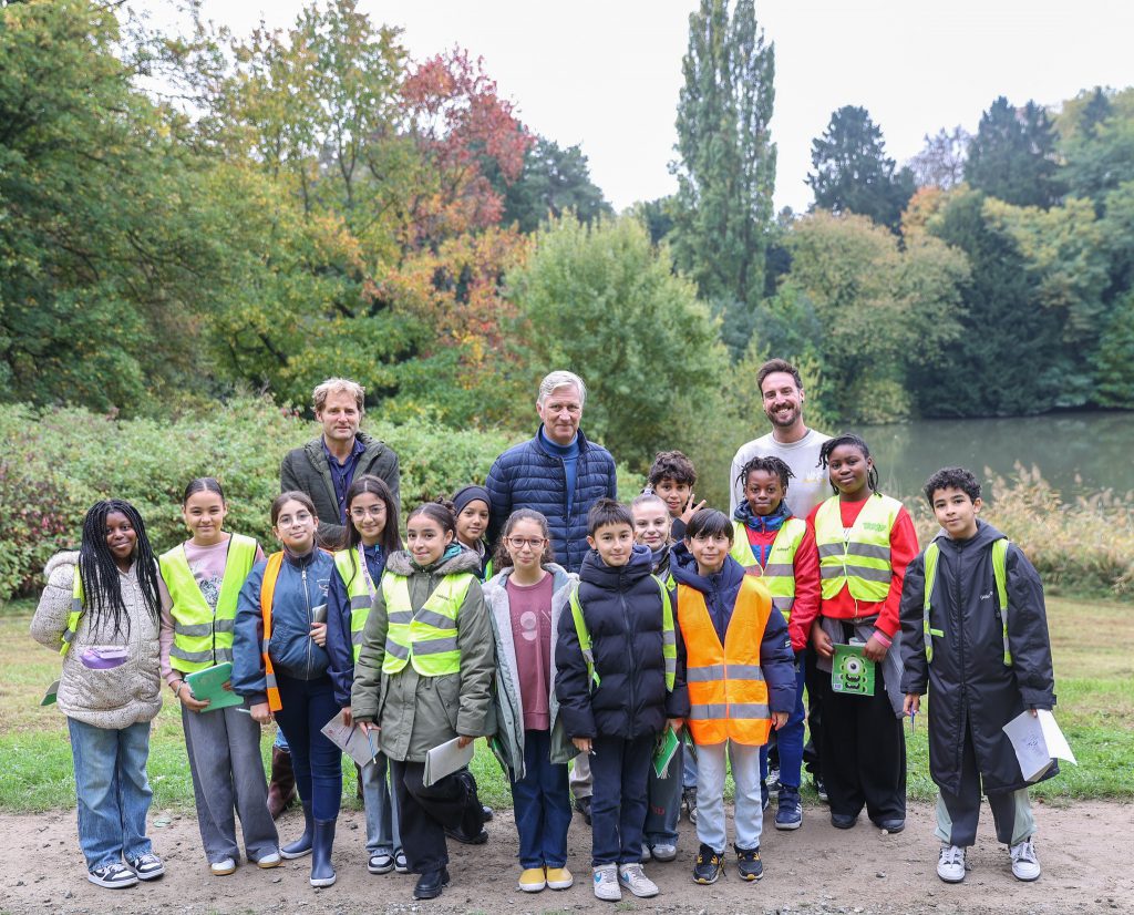 Le roi Philippe a fait découvrir la faune et la flore du domaine royal de Laeken aux élèves de deux écoles primaires bruxelloises. (Copyright photos : Palais royal)