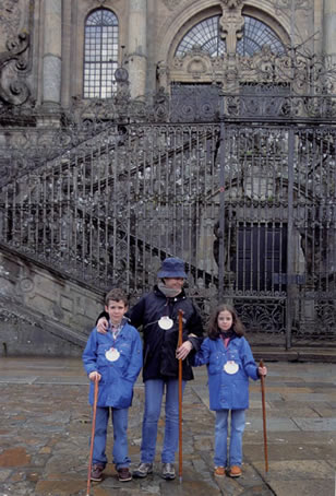 L’Infante Elena a quant à elle choisi uen photo en compagnie de ses enfants Felipe et Victoria de Marichalar devant la cathédrale de Saint Jacques de Compostelle. (Merci à A.Lin – Copyright photos : Hola)