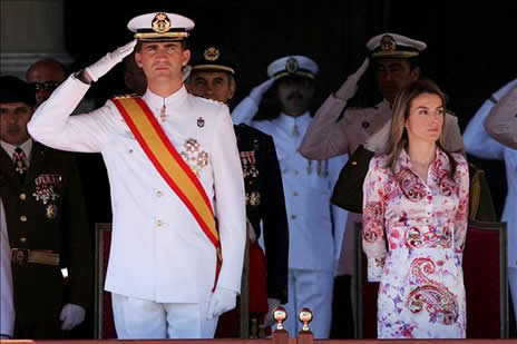 Le prince des Asturies ayant revêtu son nouvel uniforme de lieutenant-colonel et la princesse Letizia ont assisté à la remise des brevets militaires à l’académie des sous-officiels de San Fernando à Cadix. (Copyright images : Efe & Diez minutos)