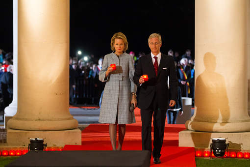 A Ploegsteert, le roi Philippe, la reine Mathilde et la princesse héritière Elisabeth ont assisté à l’événement « Lichtfront » qui représente la ligne de front de 1914 dans le Westhoek. Entre 19 et 20h30, une ligne de front a été illuminée par 8.400 porteurs de flambeau depuis la plage de Nieuport jusqu’au monument The Memorial to the Missing à Ploegsteert . Les porteurs de flambeau ont ainsi formé une chaîne humaine de 84 kilomètres. (Copyright photos : knack)
