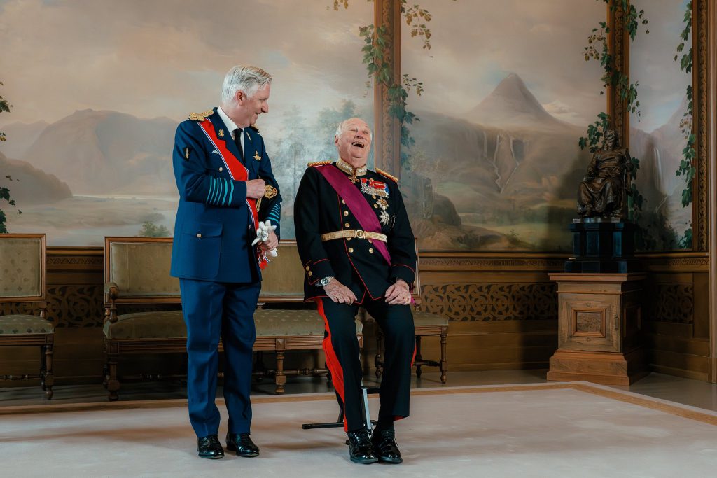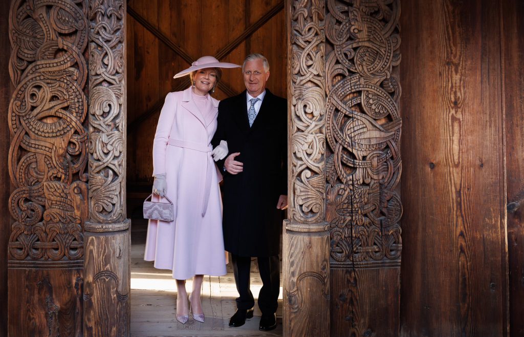 Le roi Philippe et la reine Mathilde ont été reçus au Palais royal d’Oslo par le roi Harald, la reine Sonja, le prince héritier Haakon et…la princesse héritière Mette Marit de Norvège.