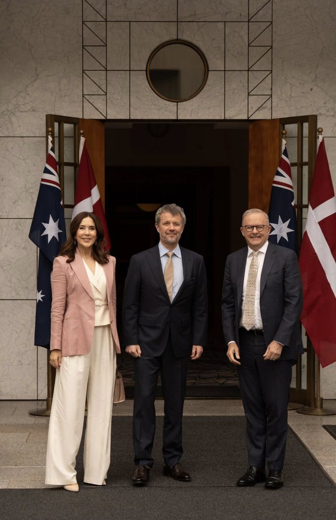Suite de la visite du roi et de la reine de Danemark en Australie. Le couple royal a planté deux arbres à Government House à Canberra avant de se rendre au monument de la guerre et d’être reçu par le Prmier Ministre Albanese.