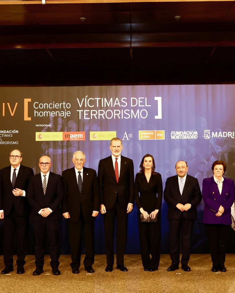Le roi Felipe et la reine Letizia d’Espagne ont assisté à l’Auditoire national de musique à Madrid au 24ème concert « In memoriam » en hommage aux victimes du terrorisme.