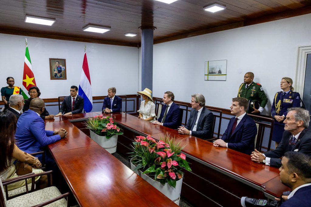 A Paramaribo, le roi Willem Alexander et la reine Maxima des Pays-Bas ont été reçu par la présidente du Surinam Jennifer Geerlings-Simons.