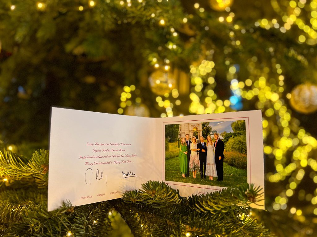C’est la photo choisie par le roi Philippe et la reine Mathilde pour présenter cette année leurs voeux. Elle est prise dans le parc du château de Laeken avec en arrière-plan les serres royales. (Copyright photos : Palais royal)