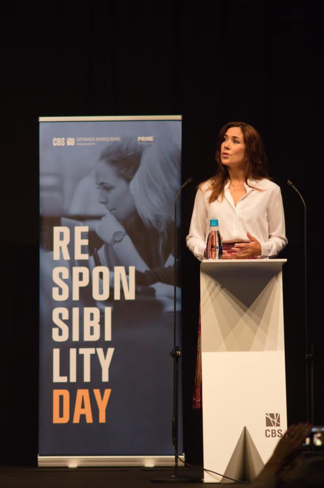 A Copenhague, la princesse héritière Mary de Danemark a pris la parole lors de la Journée de la responsabilité à l’école de commerce. (Copyright photos : Cour royale de Danemark)