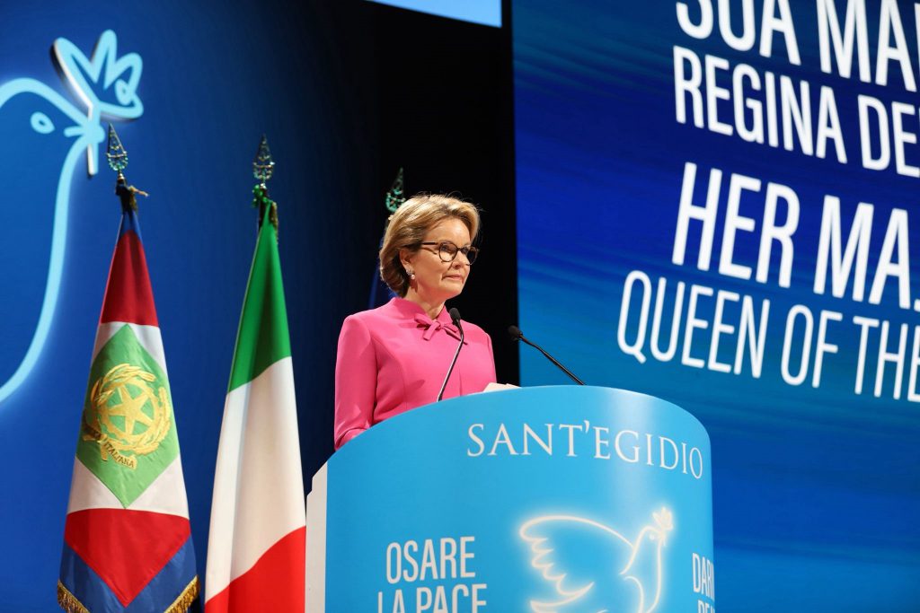 A Rome, la reine Mathilde a pris la parole lors de la cérémonie d’ouverture de « Daring Peace« , une rencontre internationale pour la paix organisée à l’initiative de la Communauté de Sant’Egidio. (Copyright photos : Palais royal)