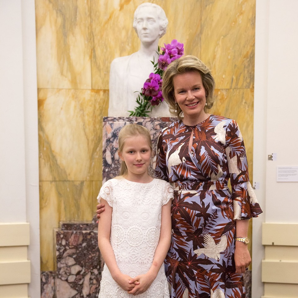On confondrait presque la Reine Mathilde avec l’arrière-plan de marbre !