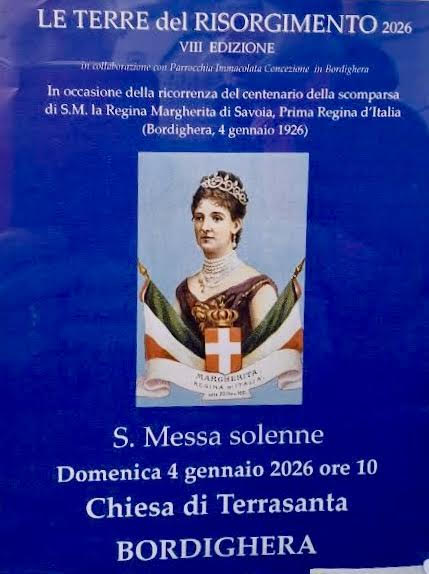 Une messe sera célébrée ce 4 janvier 2026 à Bordighera pour le centenaire du décès de la reine Margherita d’Italie (1851-1926).