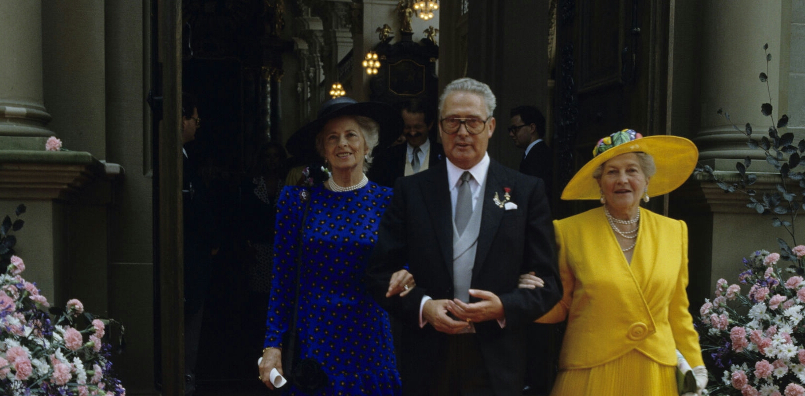 Le duc de Wurtemberg au bras de la comtesse de Paris et de la princesse Gina, épouse du prince régnant Franz-Joseph II de Liechtenstein. La princesse est décédée deux mois plus tard. Au second plan : le duc de Bragance.