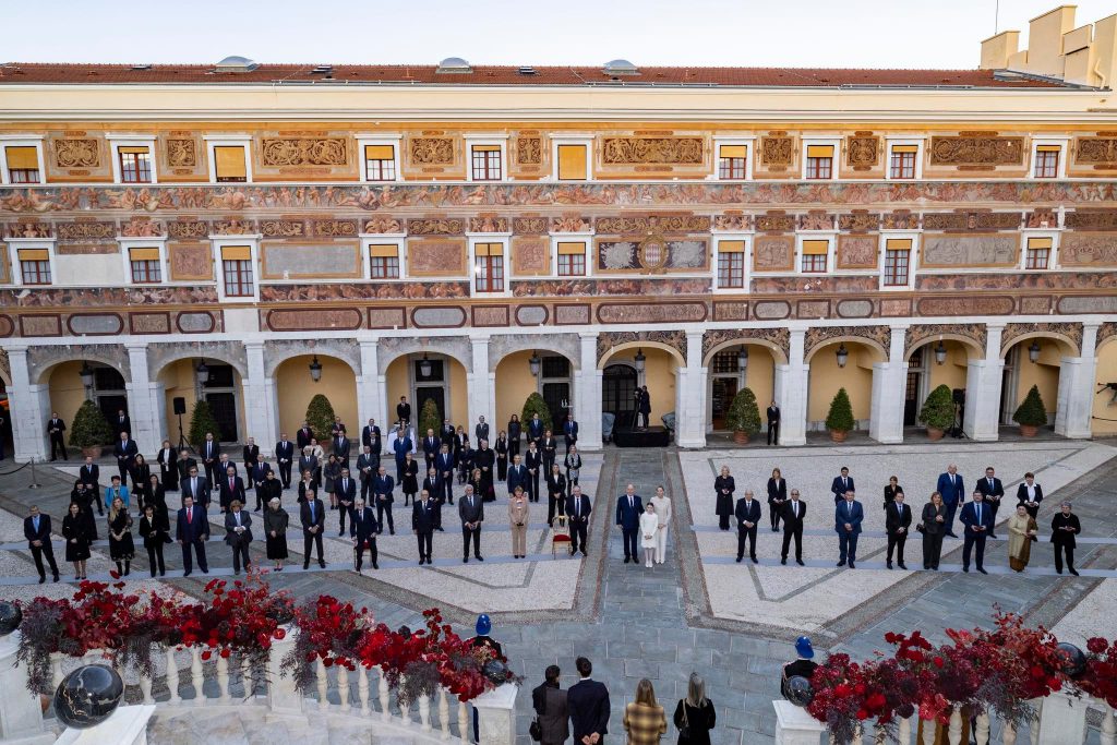 Dans la Cour du Palais princier, le prince Albert accompagné par la princesse Charlène et la princesse Gabrielle, a remis les décorations des Ordres de Saint-Charles et des Grimaldi dans la perspective de la Fête nationale. (Copyright photo : Palais princier)