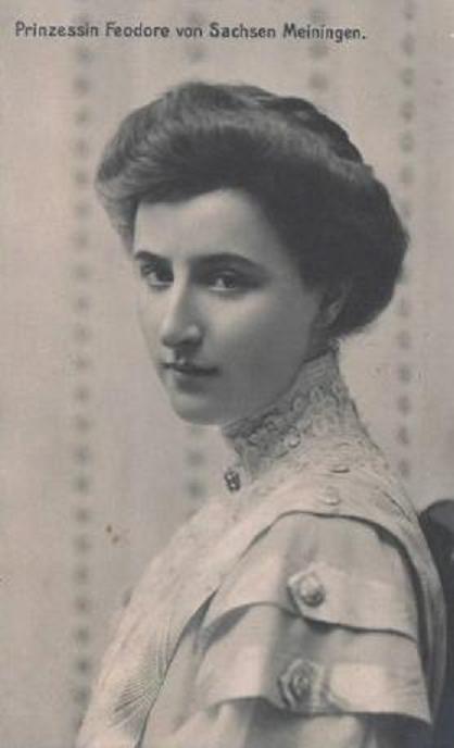 C’est le 29 mai 1890 que la princesse Feodore, Karola, Charlotte, Marie, Adelheid, Auguste, Mathilde de Saxe-Meiningen voit le jour à Hanovre. Elle est le premier enfant du prince Friedrich de Saxe-Meiningen (1861-1914) et de la princesse Adelheid de Lieppe Biesterfeld (1870-1948). La naissance de la princesse Feodore est suivie par celles de la princesse Adelheid (1891-1971), le prince Georg, futur grand-duc (1892-1946), père de la princesse Regina qui épousa l’archiduc Otto d’Autriche, le prince Ernst (1895-1914), la princesse Luise (1899-1985) et le prince Bernhard (1901-1984).