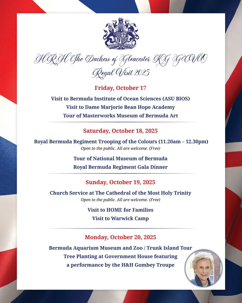 Voici le programme du voyage officiel de la duchesse de Gloucester aux Bermudes, un territoire britannique d’outre-mer.