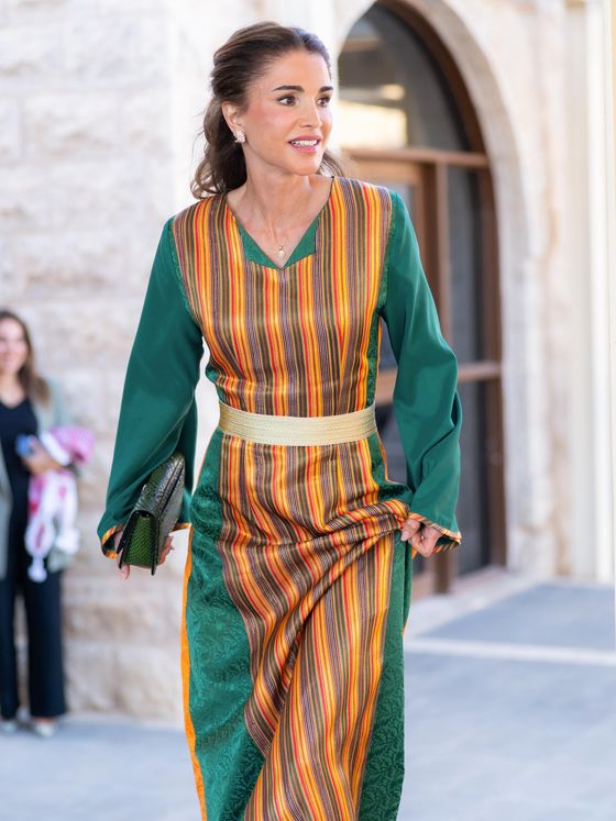 Je suis curieuse si Rania a acheté une nouvelle paire de chaussures assorties à sa nouvelle robe traditionnelle. Son sac devait être en beige comme sa ceinture.