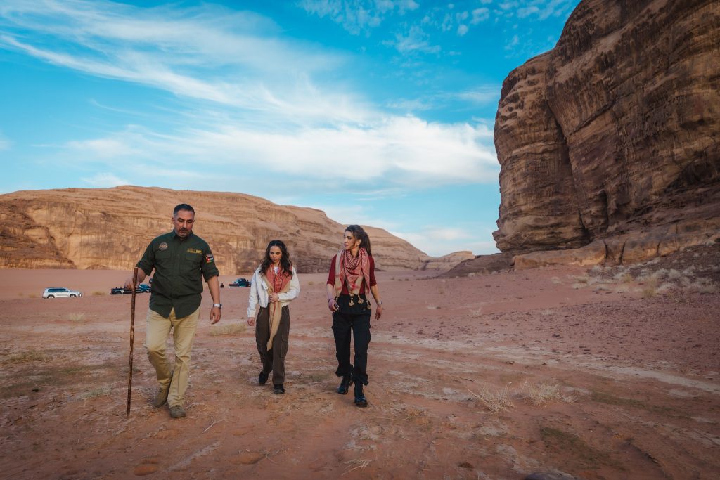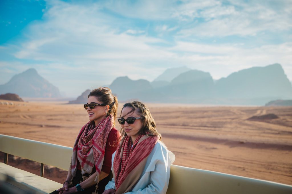 La reine Rania et la princesse Iman de Jordanie sont venues en visite dans le Wadi Rum, cette vaste région désertique où l’on trouve aussi des arches naturelles et des grottes.
