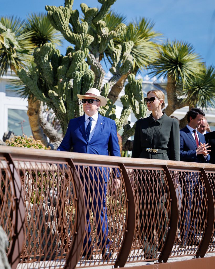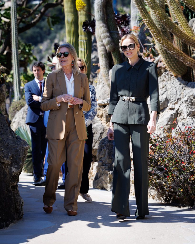 Très bel ensemble pour Charlène, très élégant qui va parfaitement à sa silhouette. J’aime aussi le tailleur de Caroline, très souriante qui semble avoir beaucoup de plaisir à visiter ce jardin.