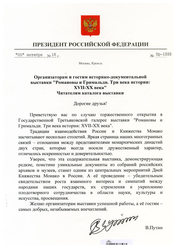 A Moscou, vient de se terminer la très belle exposition « Romanov et Grimaldi, 3 siècles d’histoire ». Elle fut d’abord présentée à Monaco en 2015 ( lien vers l’article écrit à cette occasion par Marie-Françoise : http://www.noblesseetroyautes.com/exposition-romanov-grimaldi-trois-siecles-dhistoire/) dans le cadre de l’année de la Russie en Principauté, dont le principe avait été arrêté lors de la visite d’Etat du Prince Albert II à Moscou en 2013.