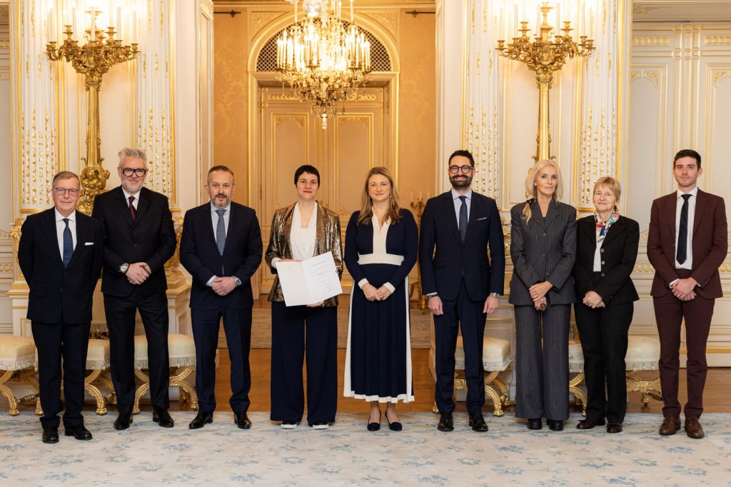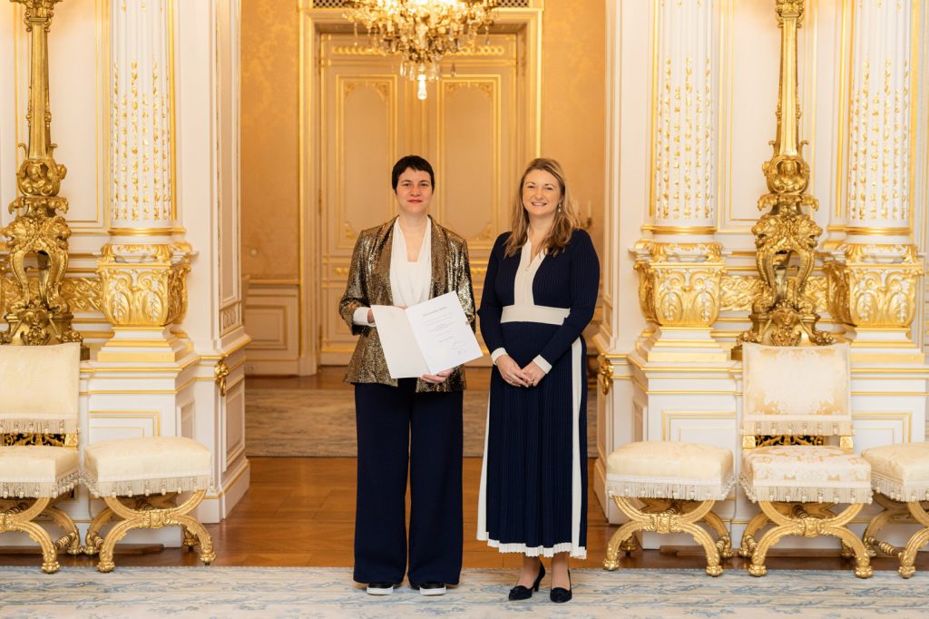 Au Palais grand-ducal, la grande-duchesse Stéphanie de Luxembourg a remis le Prix Grand-Duc Adolphe 2025 à l’artiste luxembourgeoise Chantal Maquet pour son œuvre vidéo« just listen » qui évoque sa maladie du cancer à ses différents stades. (Copyright photos : Maison du Grand-Duc)