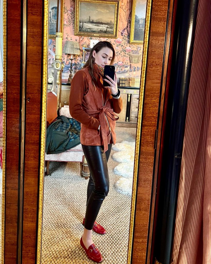 Un selfie dans une grande demeure ? Y est-elle en touriste ou en invitée? C’est en tous cas un manque de « manners ».