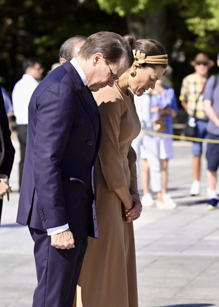 Au Memorial Park à Hiroshima, la princesse héritière Victoria et le prince Daniel de Suède ont déposé une gerbe de fleurs pour commémorer les 80 ans de la bombe atomique.